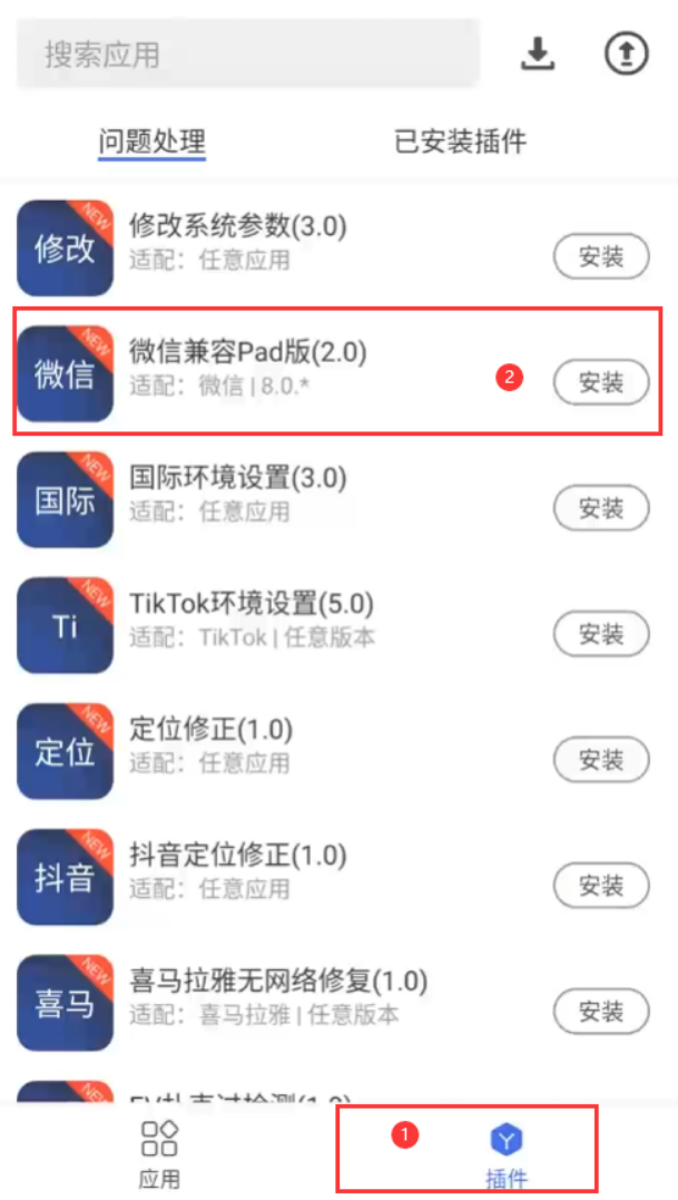 云手机开通后,打开云手机点击进入→应用市场→右下方插件栏,安装微信兼容Pad版这个插件;